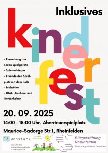 - Inklusives KinderfestVor gut drei Jahren hat die Elterninitiative LÖwenstark zusammen mit der Bürgerstiftung Rheinfelden und dem GEB Kita Rheinfelden das Projekt „Inklusiver Spielplatz“ ins Leben gerufen. In den vergangenen beiden Jahren konnten bereits drei inklusive Spielgeräte angeschafft werden. So wurde der Anfang für ein gemeinsames Spielen von Kindern mit und ohne Behinderunggemacht.Zusammen mit dem Amt für …